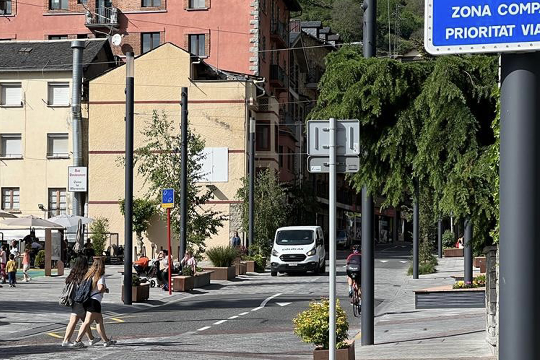 Tot i que s’ha definit l’espai de confluència com a zona com de preferència per a vianants, que va des de davant de Cal Notari fins a la plaça del Consell General, on la prioritat de pas és per als vianants i la velocitat està limitada a 30km/h, això en moltes ocasions no es respecta.